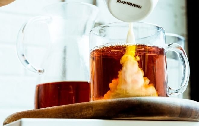 Erik trinkt seinen Tee mit Milch. Jeden Tee. An diesem Morgen ist es ein Pfefferminztee. Der Beutel schwimmt in einem Becher aus Pappe. Er schwimmt obenauf, weil die Maschine mit dem heißen Wasser gleich am Anfang der Kantinentheke steht. Die Teebeutel gibt es aber erst an der Kasse. Dann noch der Weg von der Kasse bis zum Tisch, die Zeit, die man braucht, um eine Stelle zu finden, an der sich die Umverpackung des Teebeutels aufreißen lässt – dann endlich, wenn die Wassertemperatur längst weit unter den 100 Grad liegt, die das Teewasser haben sollte, aber schon beim Austritt aus der Maschine nicht hatte, berührt das fein gewobene Teesäckchen endlich die Wasseroberfläche und schwimmt darauf wie eine Luftmatratze im Hotelpool.